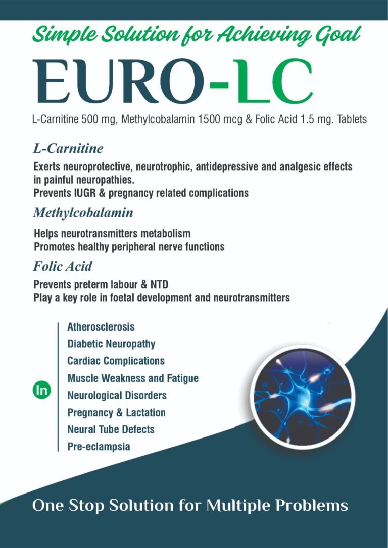 L-Carnitine 500 mg., Methylcobalamin 1500 mcg.& Folic Acid 1.5 mg. Tablets